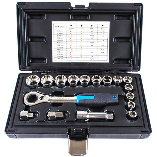 Сервис сравнения цен СкидкаГИД предлагает сравнить цены на товар «Licota ALK-1006P Набор торцевых головок проходных с аксессуарами 19 мм 17пр.»