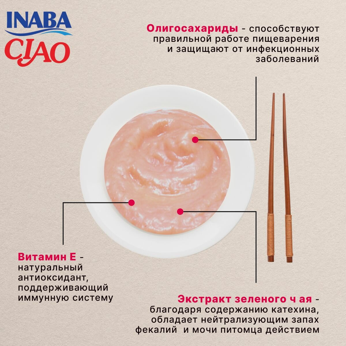 | Состав | Состав: куриное филе, тунец кацуо, кацуобуси, куриный жир, крахмал, яичный белок, экстракт курицы, дрожжевой экстракт, агарагар, казеинат натрия (молочный белок), полисахариды, витамин E, экстракт зеленого чая, красный ферментированный рис белок – не менее 24%, жиры – не менее 4,2%, клетчатка – не более 0,1%, зола – не более 2%, влажность – не более 69,5% |