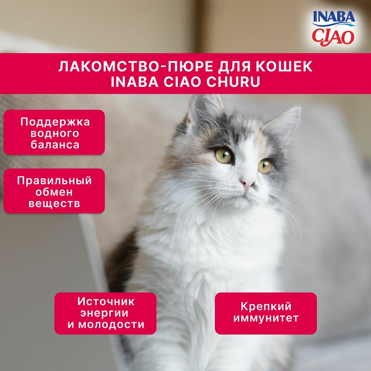 На сегодняшний день товар «INABA CIAO INABA CHURU BEE лакомство для кошек куриное филе с запеченным тунцом кацуо (4х10 г)» можно купить с кешбеком в 1 магазине: Яндекс.Маркет