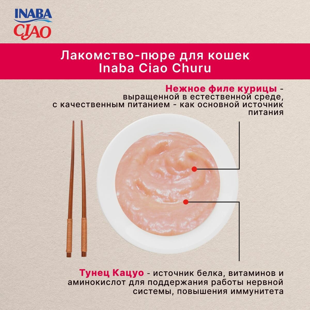 INABA CIAO INABA CHURU BEE лакомство для кошек куриное филе с запеченным тунцом кацуо (4х10 г)