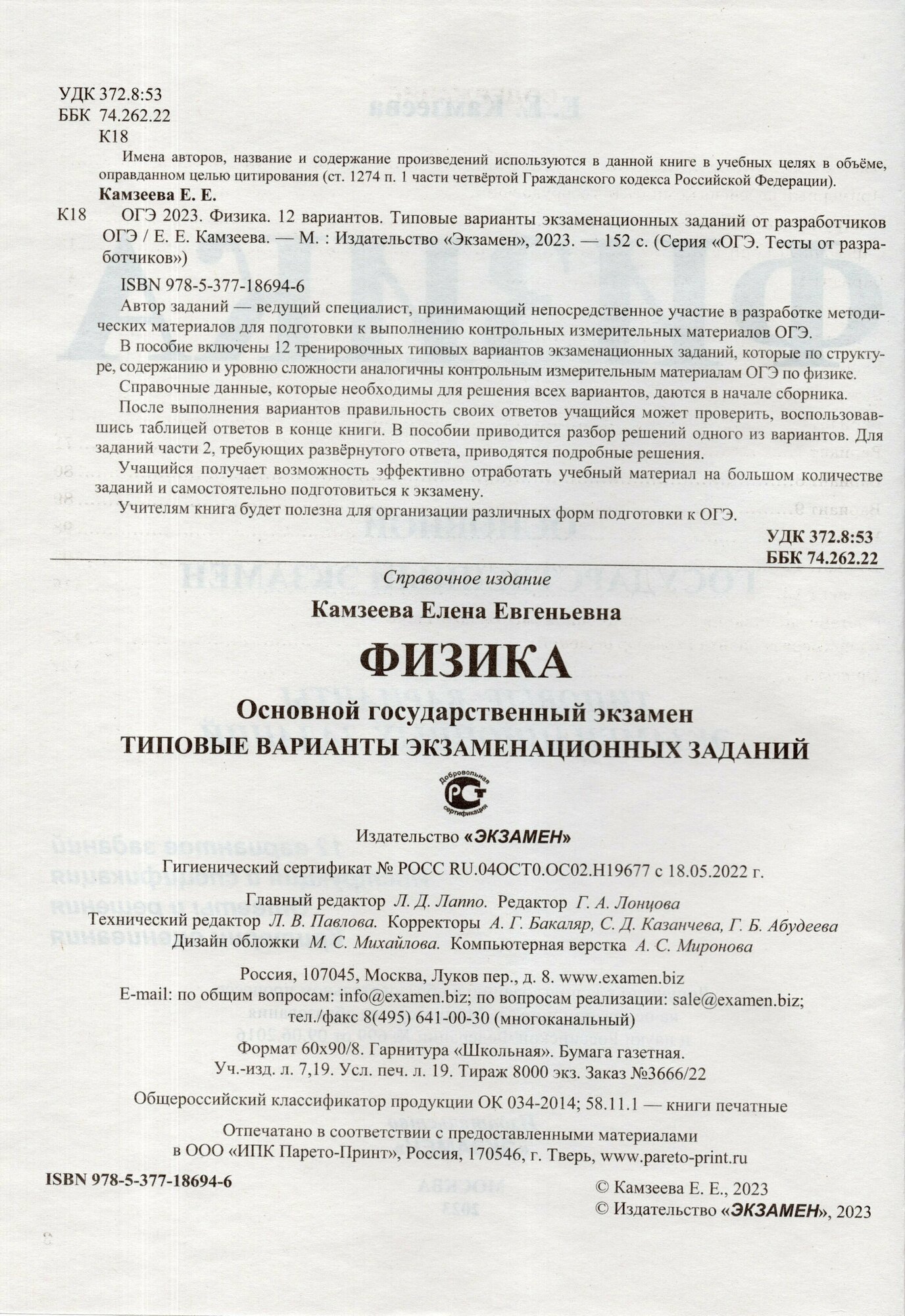 ОГЭ 2023 Физика. 9 класс. Типовые варианты экзаменационных заданий. 12 вариантов (Камзеева Елена Евгеньевна); Экзамен, 2023