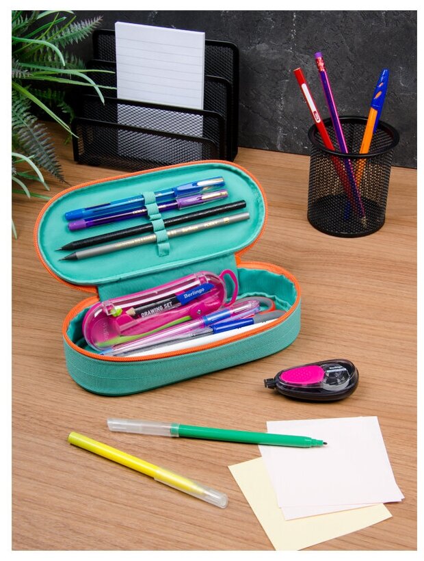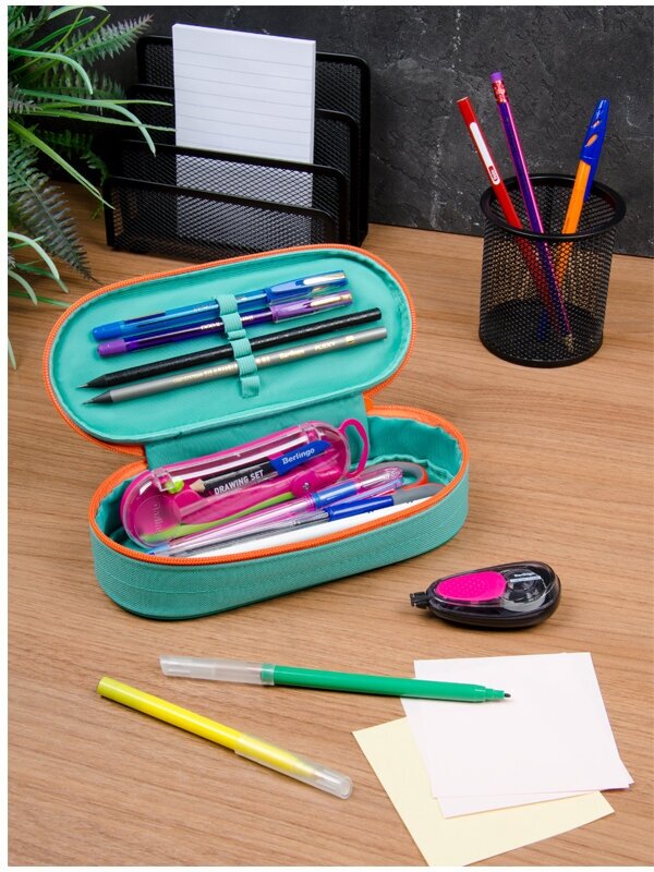 На верхней откидной крышке расположены крепления-резиночки для канцелярских принадлежностей.