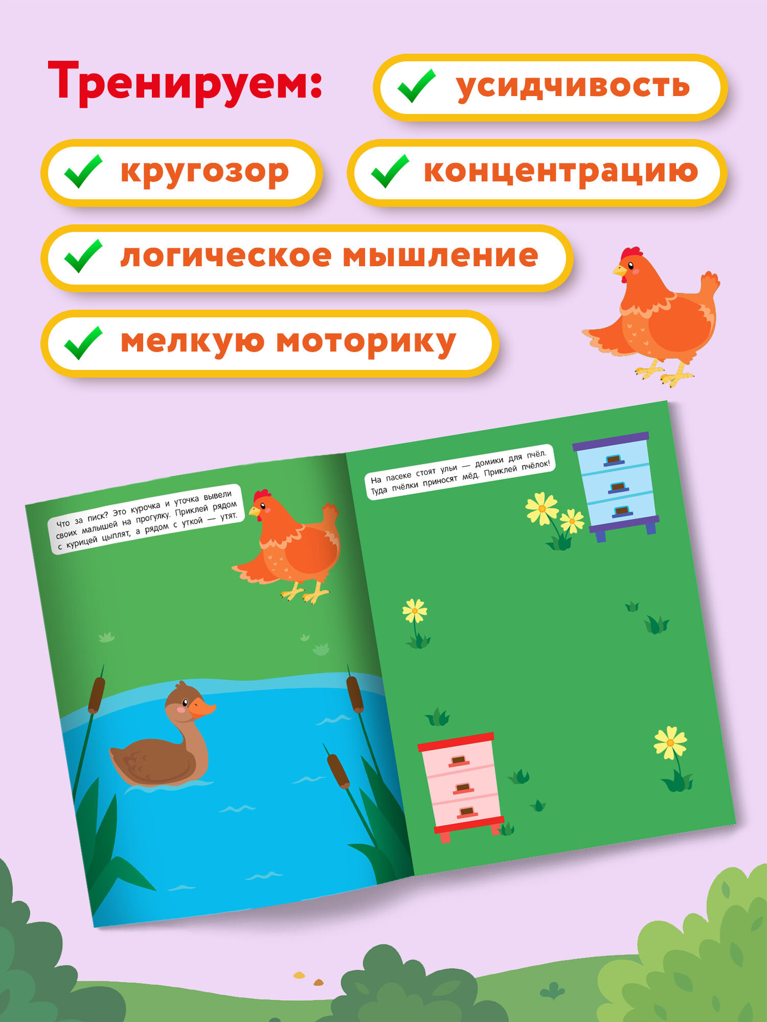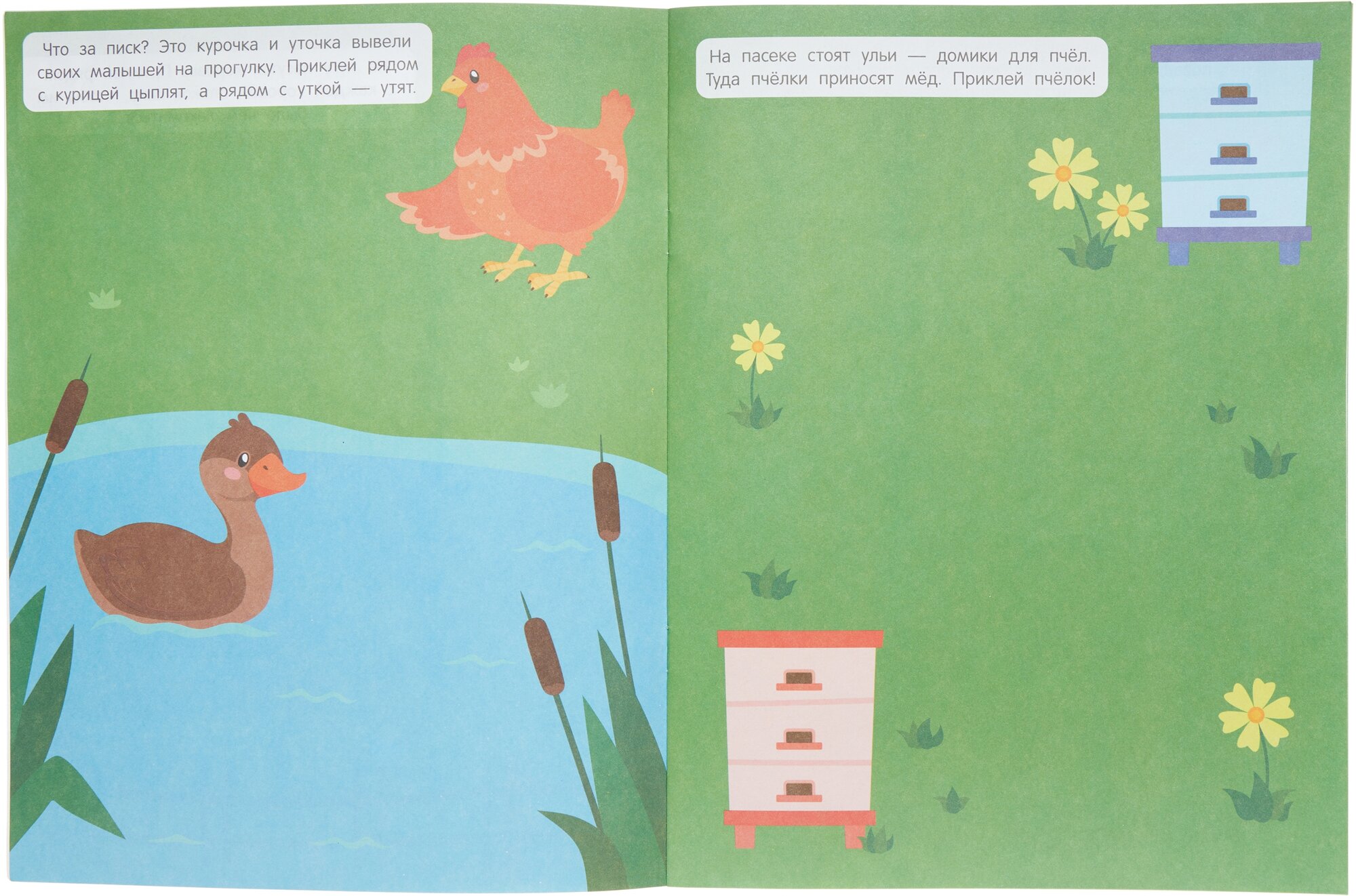 2. Из середины книги достаньте разворот с наклейками, чтобы ребёнку было удобно работать с ними.
