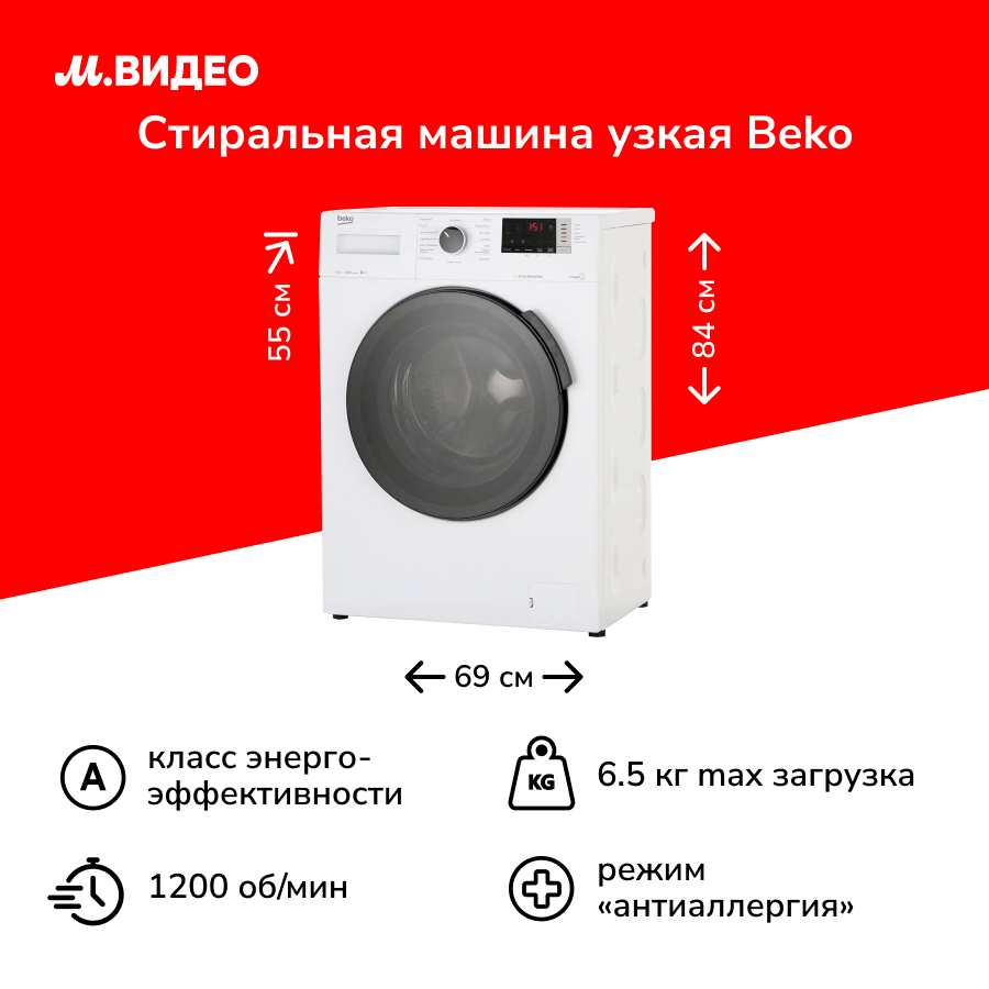 Новая отдельностоящая стиральная машина Beko представляет собой электронное устройство с фронтальной загрузкой и узким размером, что делает ее идеальным выбором для небольших помещений. С ее помощью вы сможете легко и быстро стирать белье, без лишних забот о доставке или сложности эксплуатации.