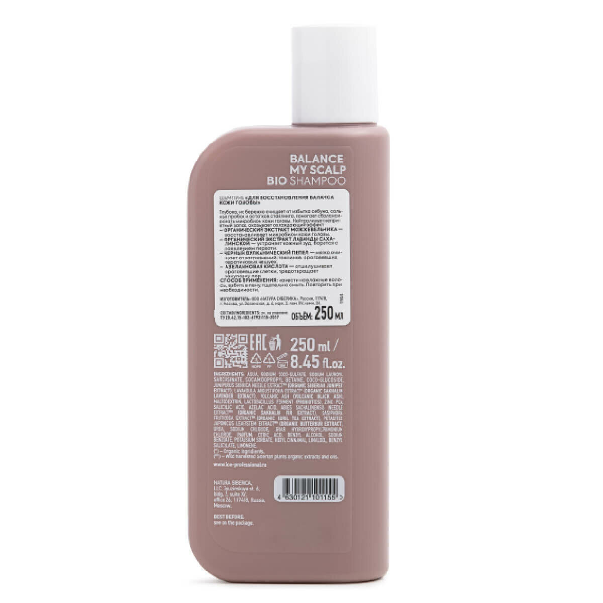 Состав: aqua, sodium coco-sulfate, sodium lauroyl sarcosinate, cocamidopropyl betaine, coco-glucoside, juniperus sibirica needle extractwh (organic siberian juniper extract), lavandula angustifolia extract (organic sakhalin lavender extract), volcanic ash (volcanic black ash), maltodextrin, lactobacillus ferment (probiotics), zinc pca, salicylic acid, azelaic acid, abies sachalinensis needle extractwh (organic sakhalin fir extract), dasiphora fruticosa extractwh (organic kuril tea extract), petasites japоnicus leaf/stem extractwh (organic butterbur extract), urea, sodium chloride, guar hydroxypropyltrimonium chloride, parfum, citric acid, benzyl alcohol, sodium benzoate, potassium sorbate, hexyl cinnamal, linalool, benzyl salicylate, limonene.