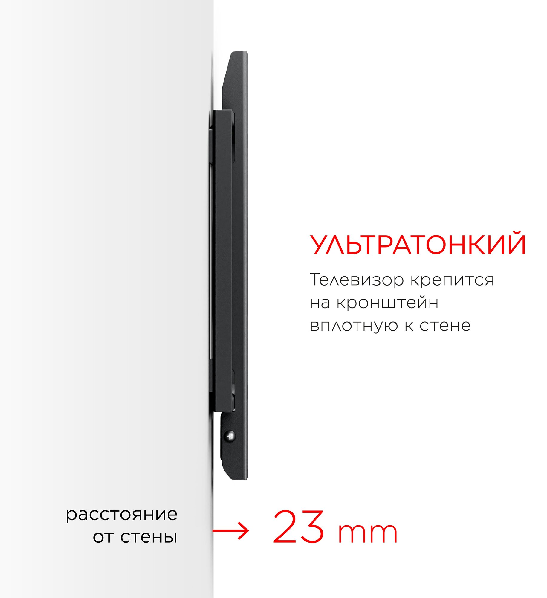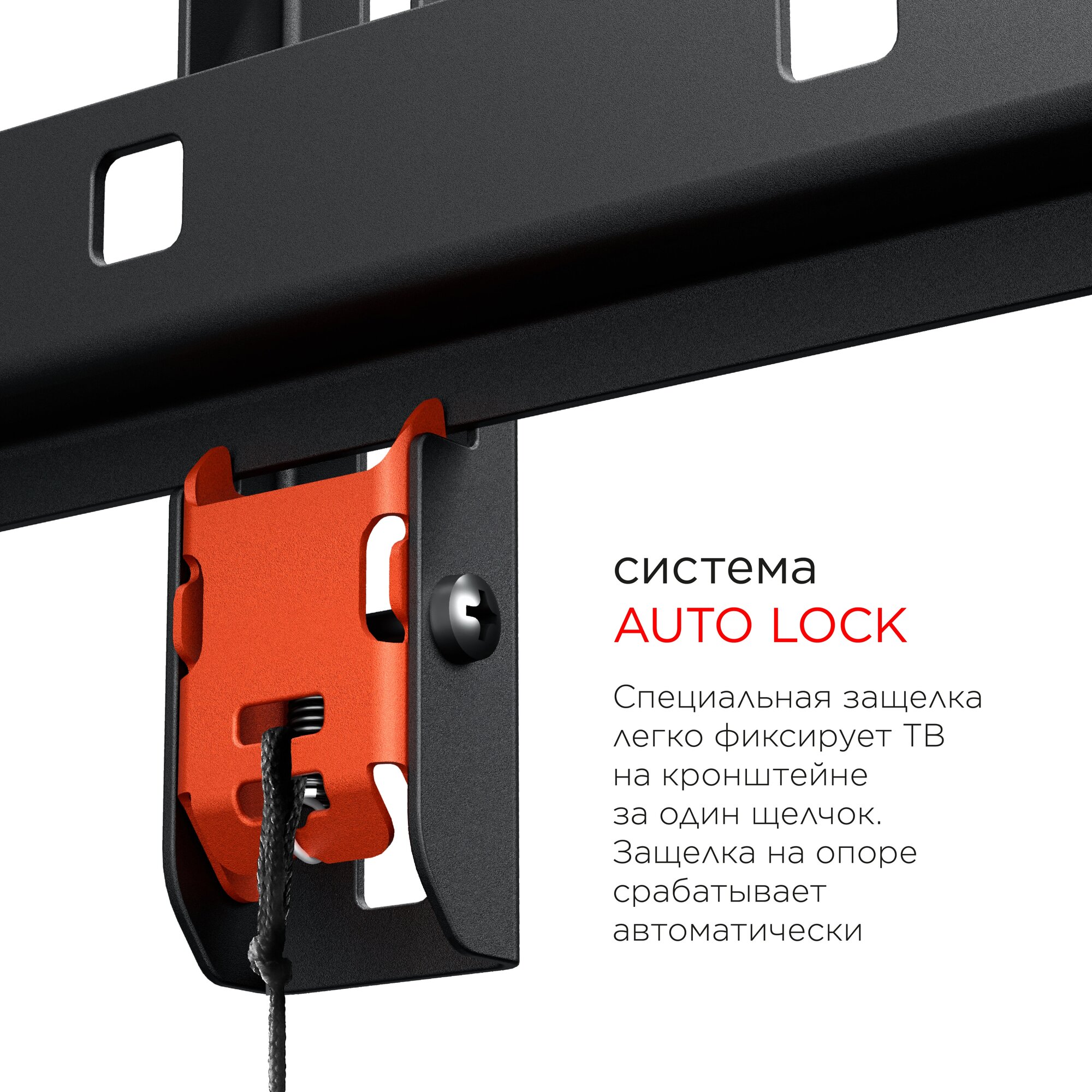 | Дополнительно | Конструкция опоры с «двойным крюком» обеспечивает двойную надежность фиксации ТВ на кронштейне,Нагрузка на планку основания распределяется равномерно,Специальная защелка легко фиксирует ТВ на кронштейне за один щелчок,Защелка на опоре срабатывает автоматически,Высокопрочная сталь толщиной 2 мм обеспечивает максимальную надежность кронштейна,Удобная опция для выравнивания кронштейна по горизонту при установке на стену,В набор входят все необходимые крепежи и инструкция по установке |