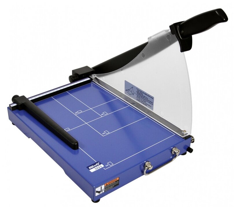 Сабельный резак A4 предназначен для резки до 20 бумажных листов. Защитный экран предотвращает вероятность прикосновения пользователя к ножу резака во время работы. Прочное металлическое основание.
