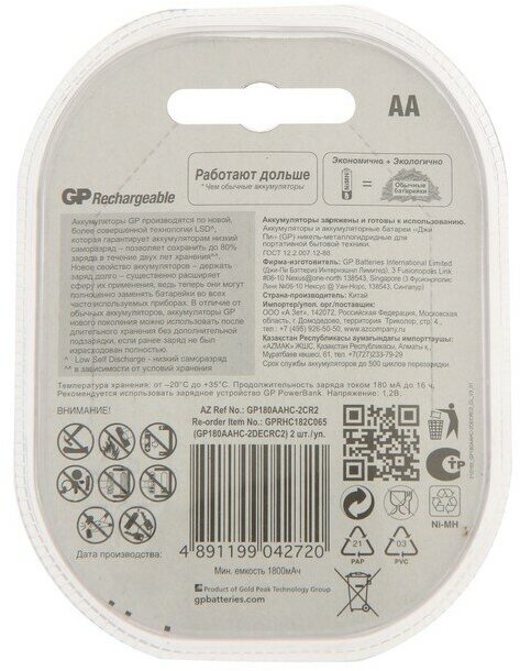 Аккумулятор GP 180AAHC 2 шт. AA 1800мAч 180AAHC-2DECRC2