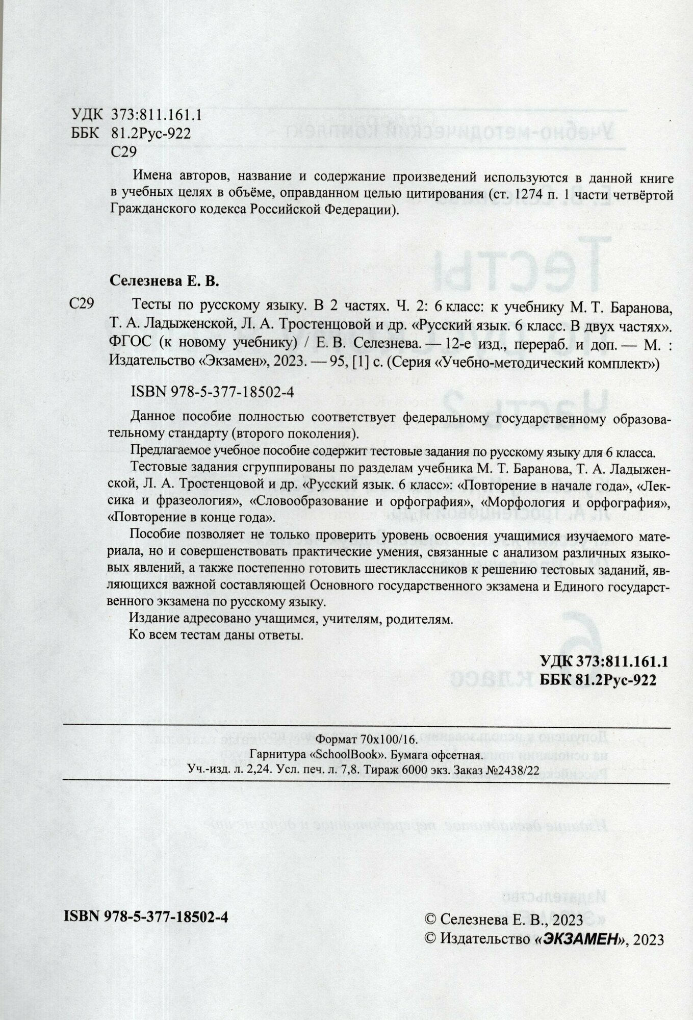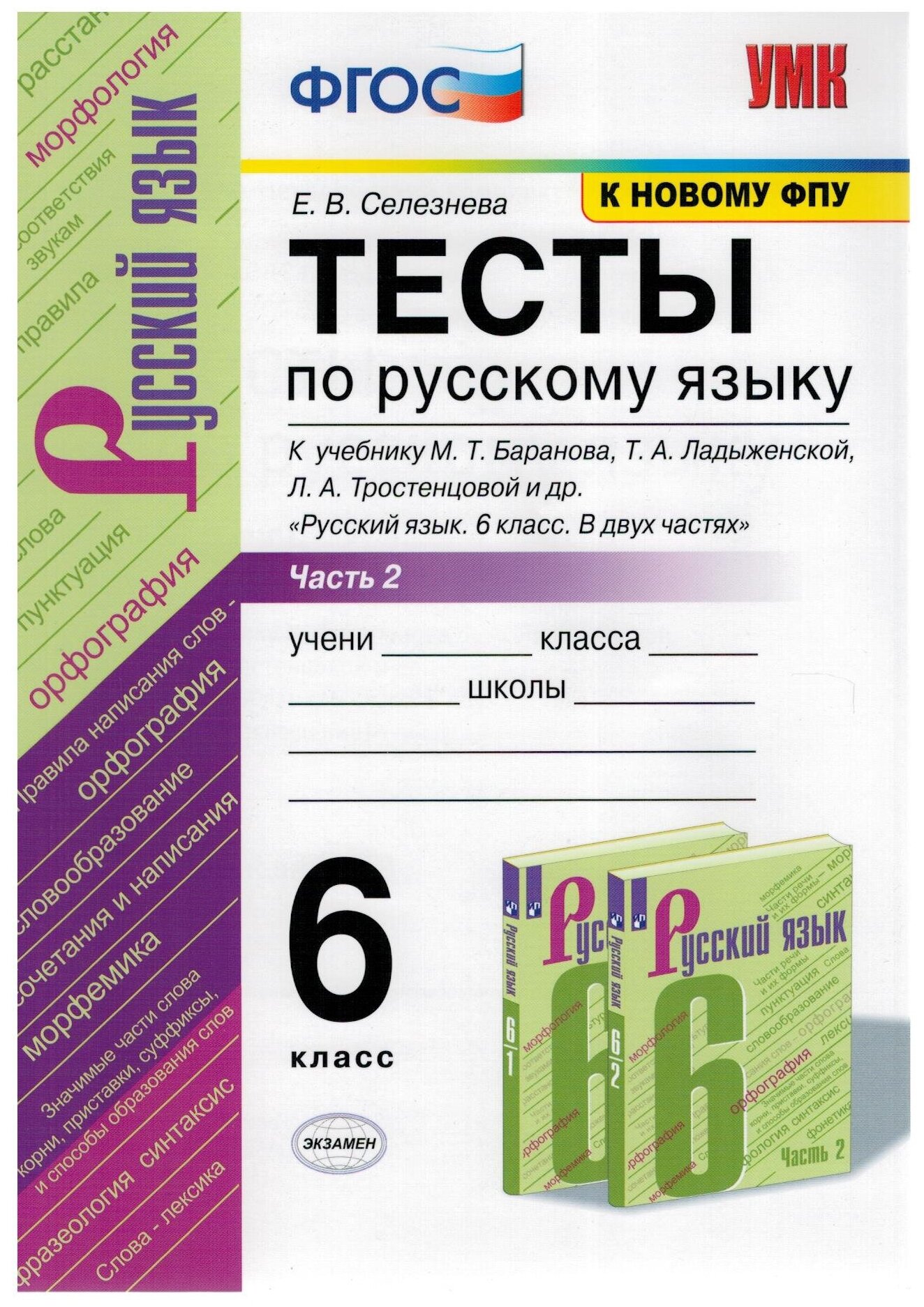 Тесты по русскому языку 6 класс Часть 2 К учебнику М Т Баранова Т А Ладыженской Л А Тростенцовой и др Русский язык 6 класс В двух частях М Просвещение (Селезнева Елена Владимировна); Экзамен, 2023