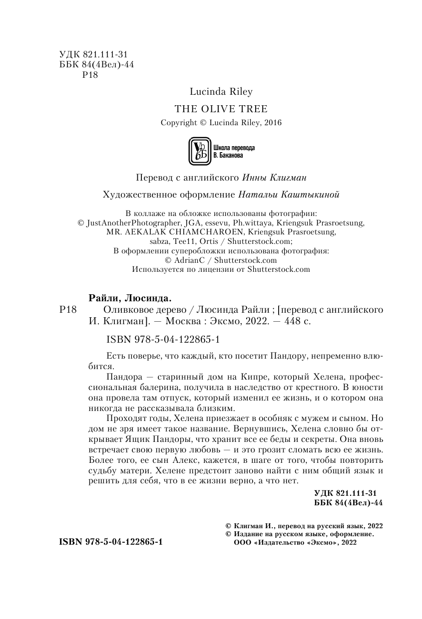 Книга: Оливковое дерево (Люсинда Райли); Эксмо, Inspiria, Редакция 1, 2024