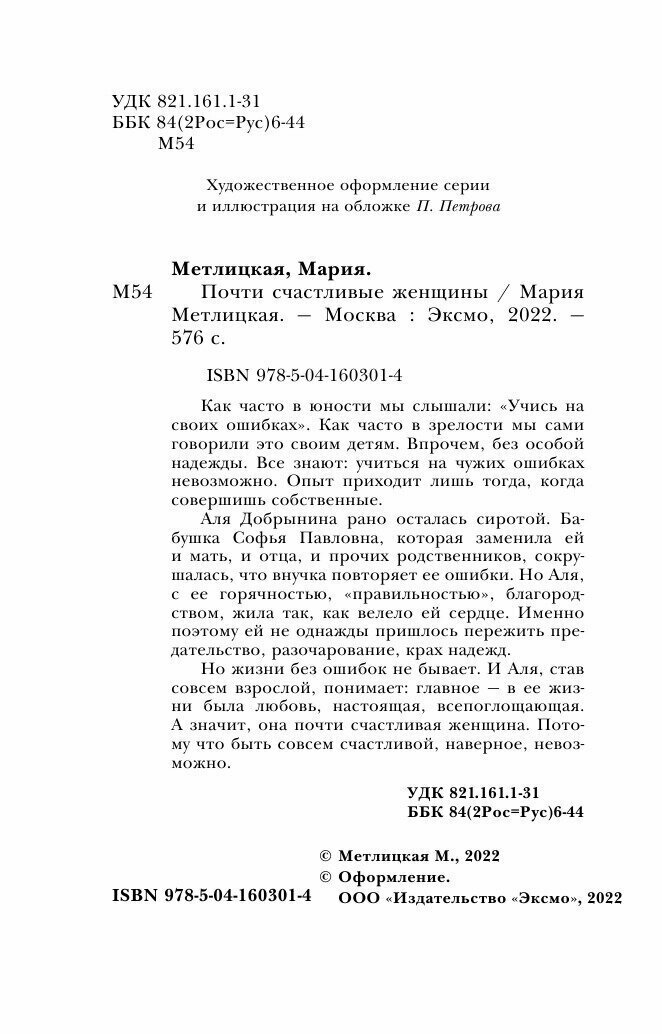 Книга: Почти счастливые женщины (Метлицкая Мария Робертовна); ООО "Издательство "Эксмо", 2021