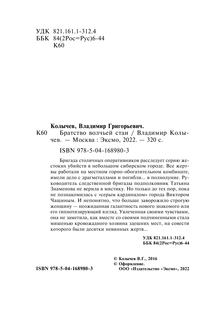 Книга: Братство волчьей стаи (Колычев Владимир Григорьевич); Эксмо-Пресс, 2022