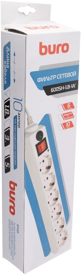 Сетевой фильтр BURO 1.8м белый 600SH-1.8-W