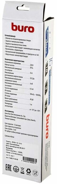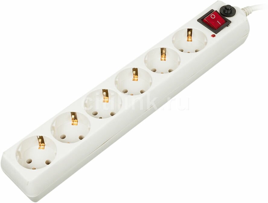 Сетевой фильтр BURO 6 розеток 1.8 м белый
