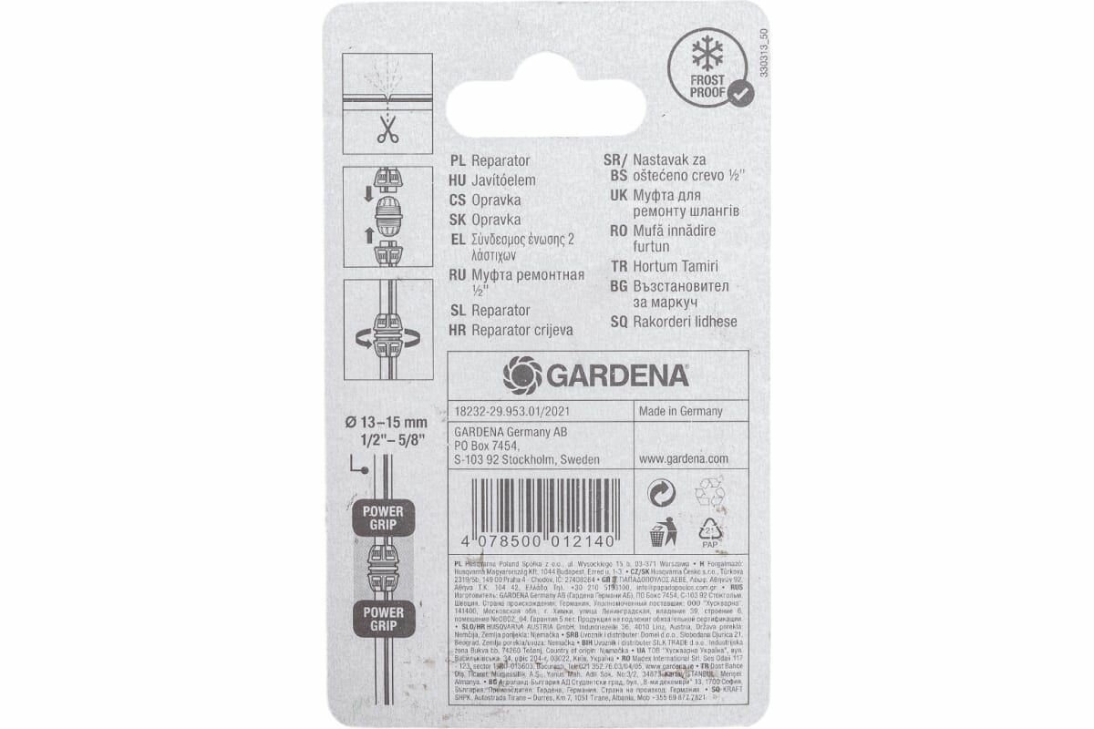 - Муфта ремонтная 1/2 (Gardena), 18232 обзор 18232-29.000.00 производитель Husqvarna Group (Германия)