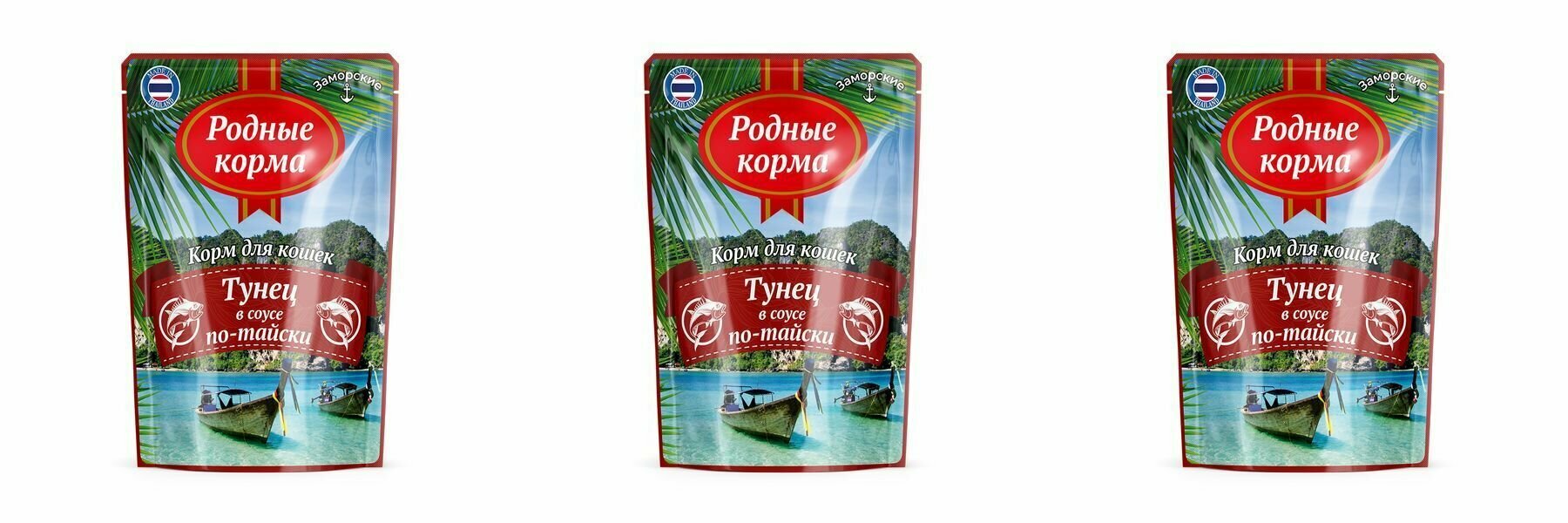 Влажный корм для кошек Родные корма Заморские Тунец в соусе по-тайски 70г