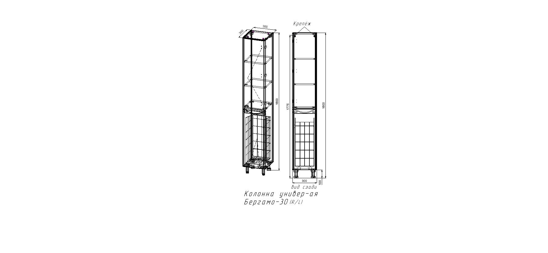 - Габариты (ШхВхГ): 300х1800х300 мм.