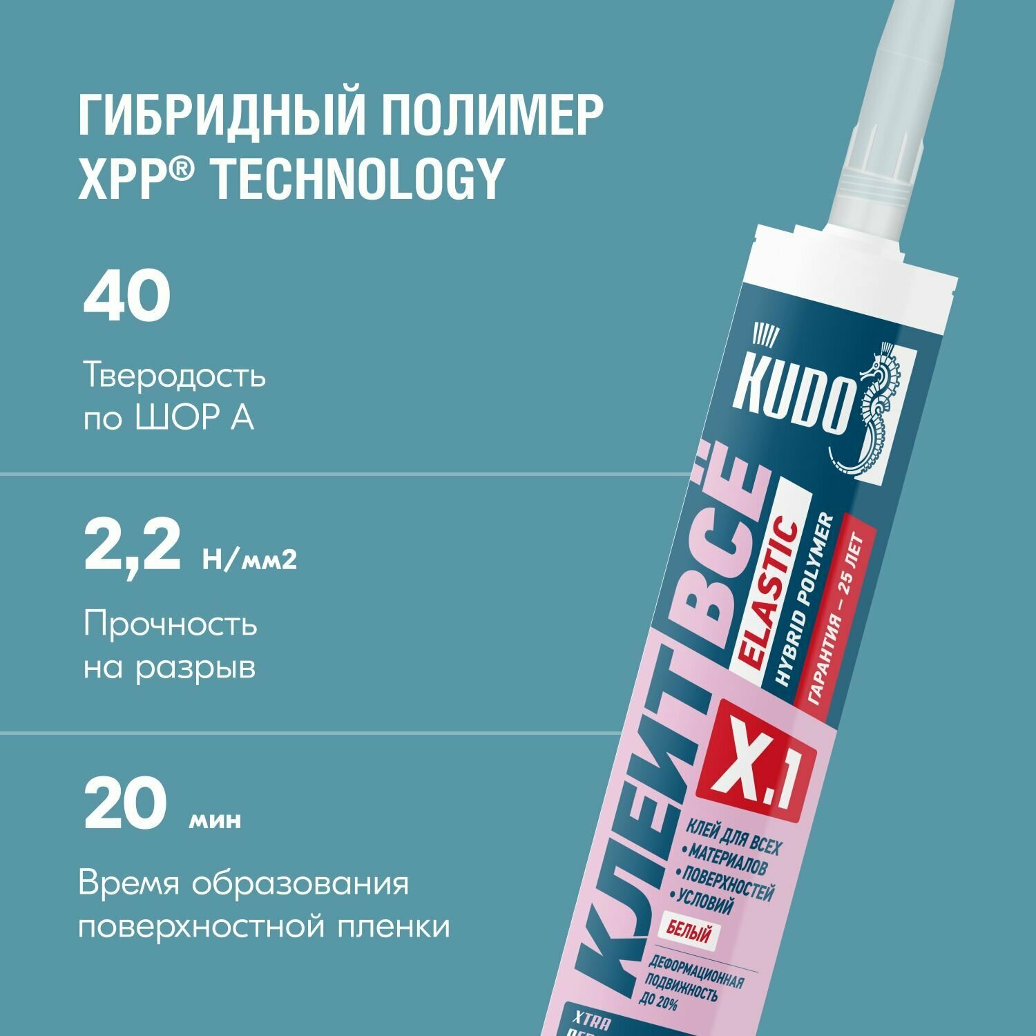 KUDO KX-1W Клей KUDO КЛЕИТ ВСЁ ELASTIC на основе гибридных полимеров белый 280 мл KX-1W Клеит Все ELASTIС