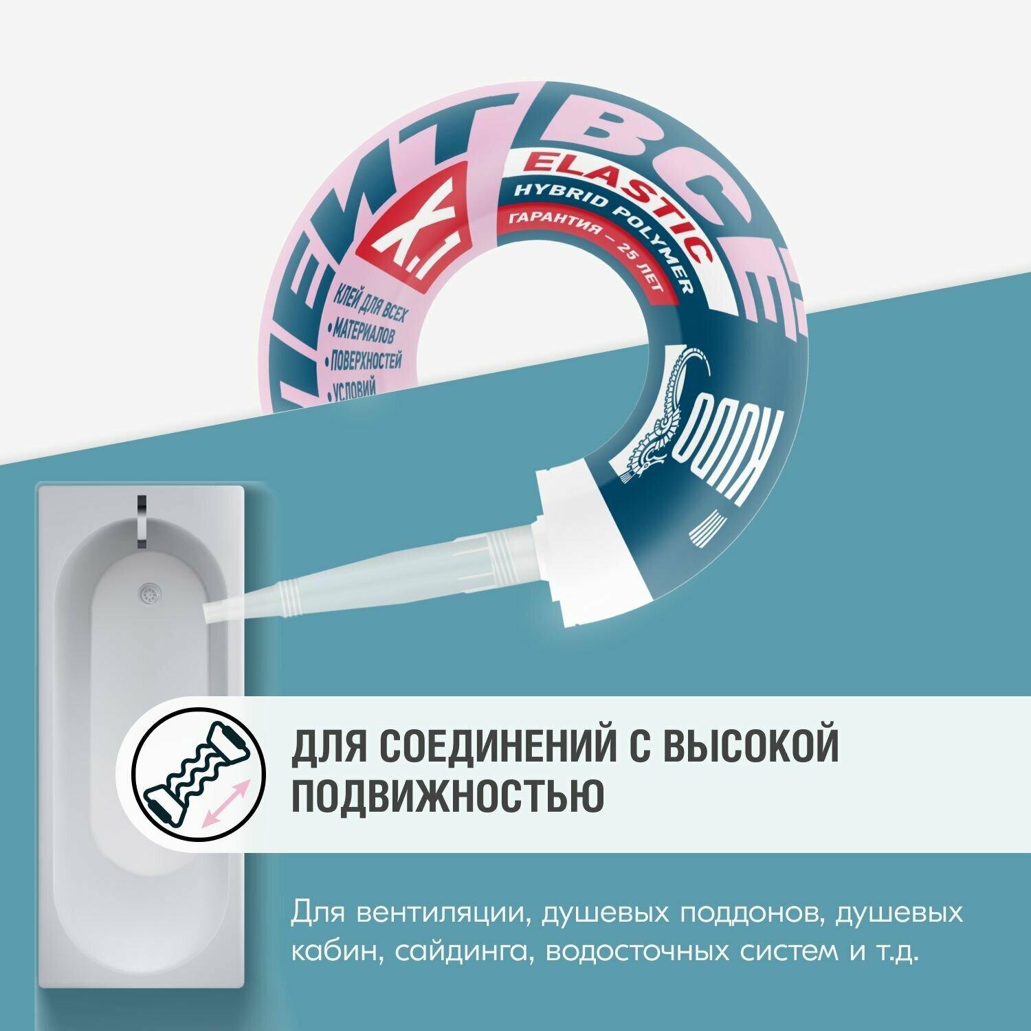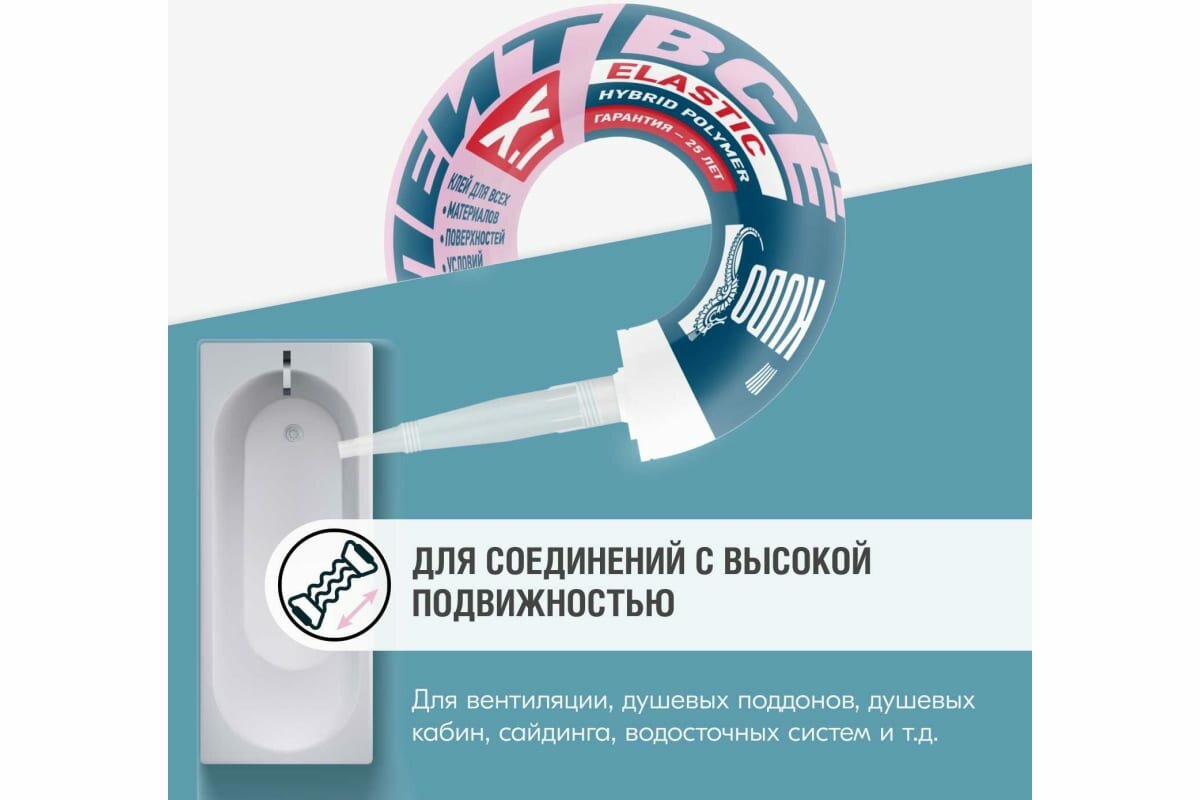 Предназначен для создания высокопрочных клеевых соединений с высокой подвижностью. Клей-герметик KUDO® ELASTIC KX-1W используется для монтажа строительных и декоративных элементов (систем кондиционирования и вентиляции, душевых поддонов, душевых кабин, сайдинга, водосточных систем и т.п.) на бетонные, кирпичные, каменные, металлические, деревянные и другие поверхности (кроме поверхностей из полиэтилена, полипропилена и фторопласта). Не токсичен и не горюч. Не содержит изоцианатов, растворителей и силиконов.Не требует предварительного грунтования, допускается наносить на влажные поверхности. Для внутренних и наружных работ.Гибридный (современный аналог MS-полимеров) клей-герметик KUDO® устойчив к нагрузкам и вибрациям. Тиксотропный, при нанесении не растекается и не сползает по шву. После отверждения можно шлифовать и окрашивать водными и синтетическими красками*.клеит все спринт клеит все ELASTIC