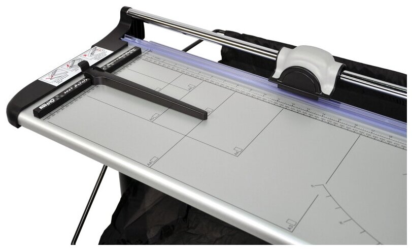Роликовый резак А1 формата от компании KW-triO. KW-triO (или KW-triO 1) принадлежит к профессиональная серия резаков: прочная конструкция, большой, широкий металлический стол с удобной разметкой, автоматическим прижимом стопы бумаги во время реза и подвижным упором. Поставляется в комплекте со станиной для удобного напольного размещения, имеется лоток для бумаги. Также есть крепления для настенного размещения. Подойдет для офисов, типографий и организаций со средним и большим объемом работ.