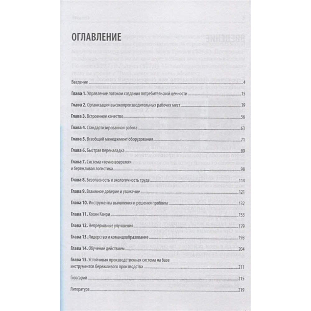 В издании описана главная особенность методологии бережливого производства, которая заключается в одновременном следовании двум направлениям развития - процессам внутри предприятия (компании) и людям, занятым на нем производительным трудом. Уделено значительное внимание таким понятиям, как Система 5С, менеджмент оборудования, бережливая логистика, непрерывные улучшения, лидерство и командообразование.