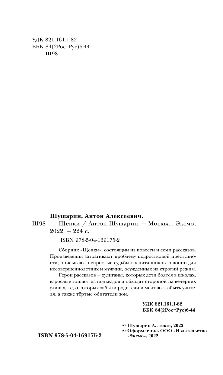 Книга: Щенки (Шушарин Антон Алексеевич); ООО "Издательство "Эксмо", 2022