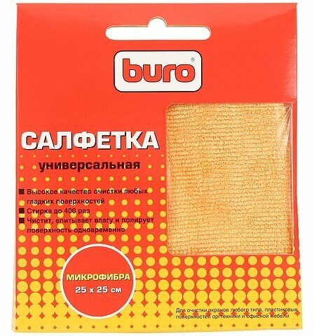 Микрофибра Buro. Салфетка из микроволокна. Продукт высоких технологий. Эффективное средство для очистки экранов любого типа, пластиковых поверхностей оргтехники и офисной мебели. Не теряет своих свойств после 400 стирок.