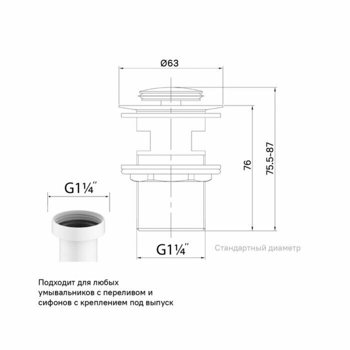 | Диаметр сливного отверстия | 63 |