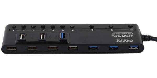 — 10-портовый концентратор (4 порта USB 3.0 + 6 портов USB 2.0) комплектуется сетевым адаптером GA-3212UB с двумя USB-портами, выходным суммарным током 2,5 А и кабелем питания длиной 100 см.