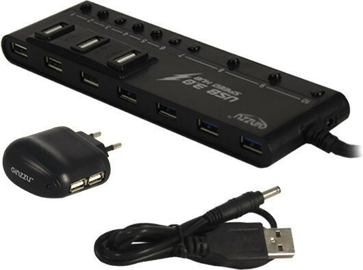Хаб (разветвитель) GINZZU черный GR-380UAB (размер: 240x140x50)