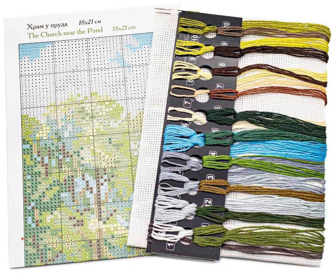 В наборе: канва Aida 14, хлопковые мулине, цветная схема, игла, инструкция.