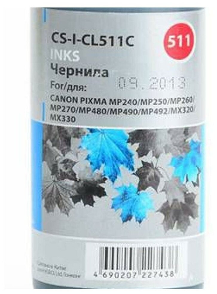 Чернила Cactus CS-I-CL511C голубой, флаконов: 1, объём 100мл, для Canon Pixma MP240/MP250/MP260/MP270/MP480