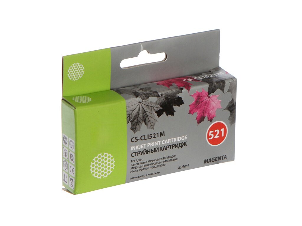 Картридж Cactus CS-CLI521M для струйных принтеров Canon.Расходные материалы Cactus для печати максимизируют характеристики принтера. Обеспечивают повышенную четкость изображения и плавность переходов оттенков и полутонов, позволяют отображать мельчайшие детали изображения. Обеспечивают надежное качество печати.