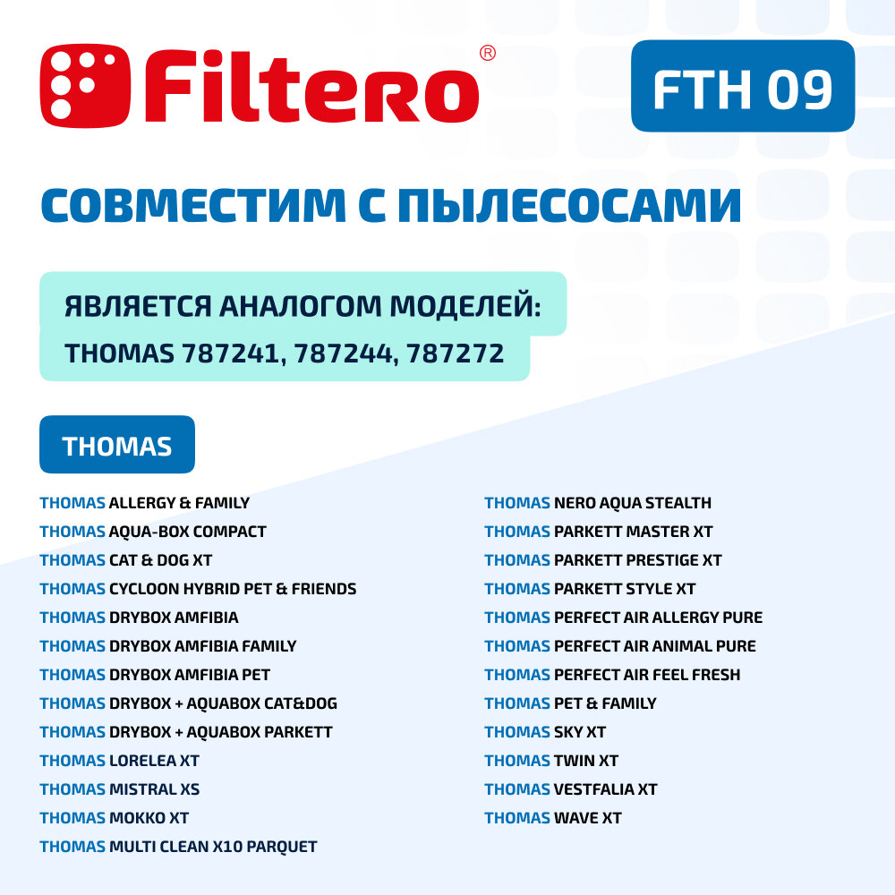 НЕРА-фильтр FILTERO FTH 09 1 шт. для пылесосов THOMAS: Cat & Dog XT Lorelea XT Mistral XS Vestfalia XT Twin XT Parkett Master XT Parkett Prestige XT Parkett Style XT FTH 09 TMS