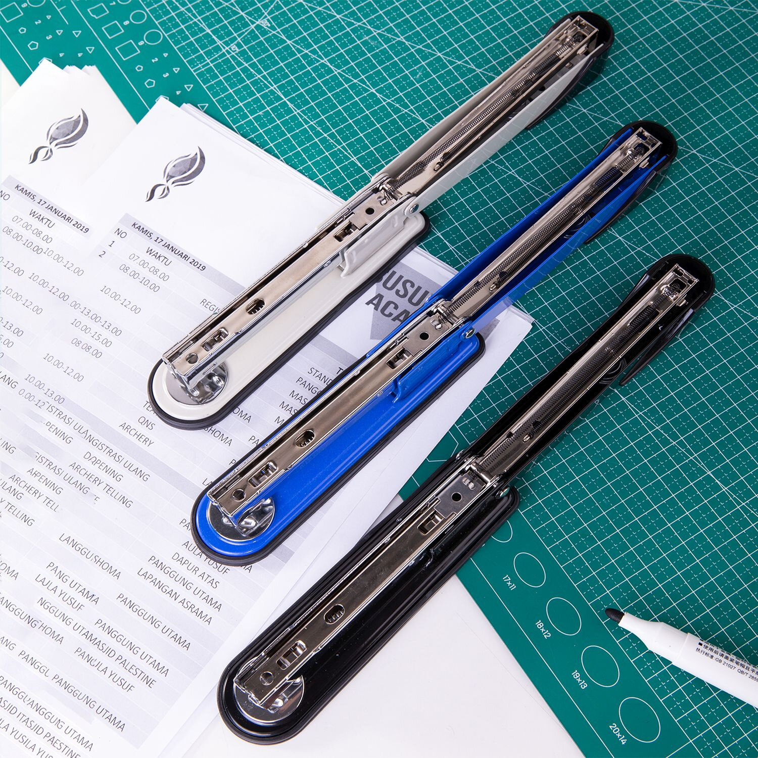 | Особенности | Металлический двухцветный корпус, эргономичный дизайн, открытое/закрытое сшивание, цвета в ассортименте черный, серый, синий, индикатор наличия скоб |
