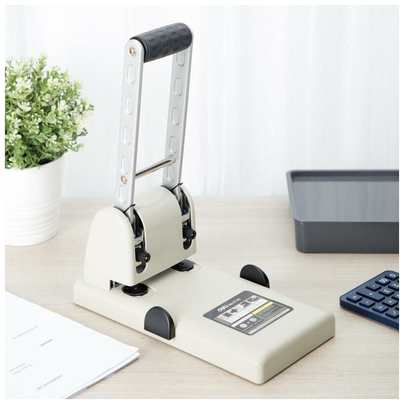 Дырокол Deli Heavy Duty макс.:100лист. металл ассорти отв.:2 с линейкой E0130