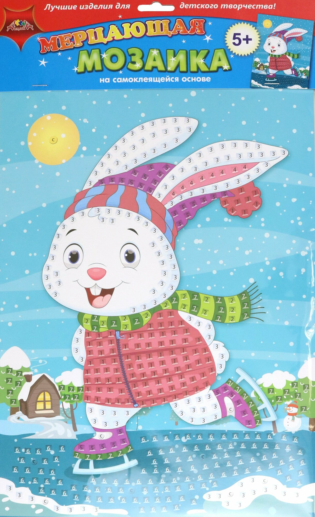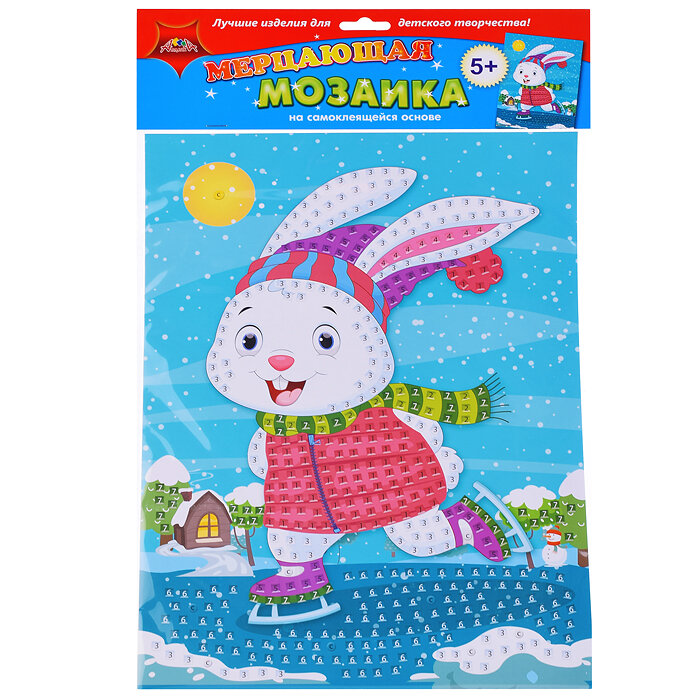 Набор для детского творчества "Мерцающая мозаика" понравится детям и взрослым. Он состоит из цветного рисунка на картоне и квадратиков пластика с клеевым слоем. На рисунке числами и цветом показаны места, куда необходимо приклеить элементы мозаики. В результате получится яркая картинка, которую отлично дополнят глазки и стразы. Детям очень нравиться приклеивать квадратики, это не только увлекательно, но и полезно, ребенок развивает мелкую моторику, внимание и аккуратность. Сделать аппликацию может ребенок от 3-х лет, если взрослые помогут ему, а детям от 5-ти лет можно доверить сделать поделку самостоятельно. Это подарит родителям полчаса свободного времени. Мозаика из цветных элементов ТМ "Апплика" отличный подарок. Этот набор можно взять в путешествие или на дачу - все необходимые элементы входят в состав набора, а сделать аппликацию можно без клея и ножниц.
