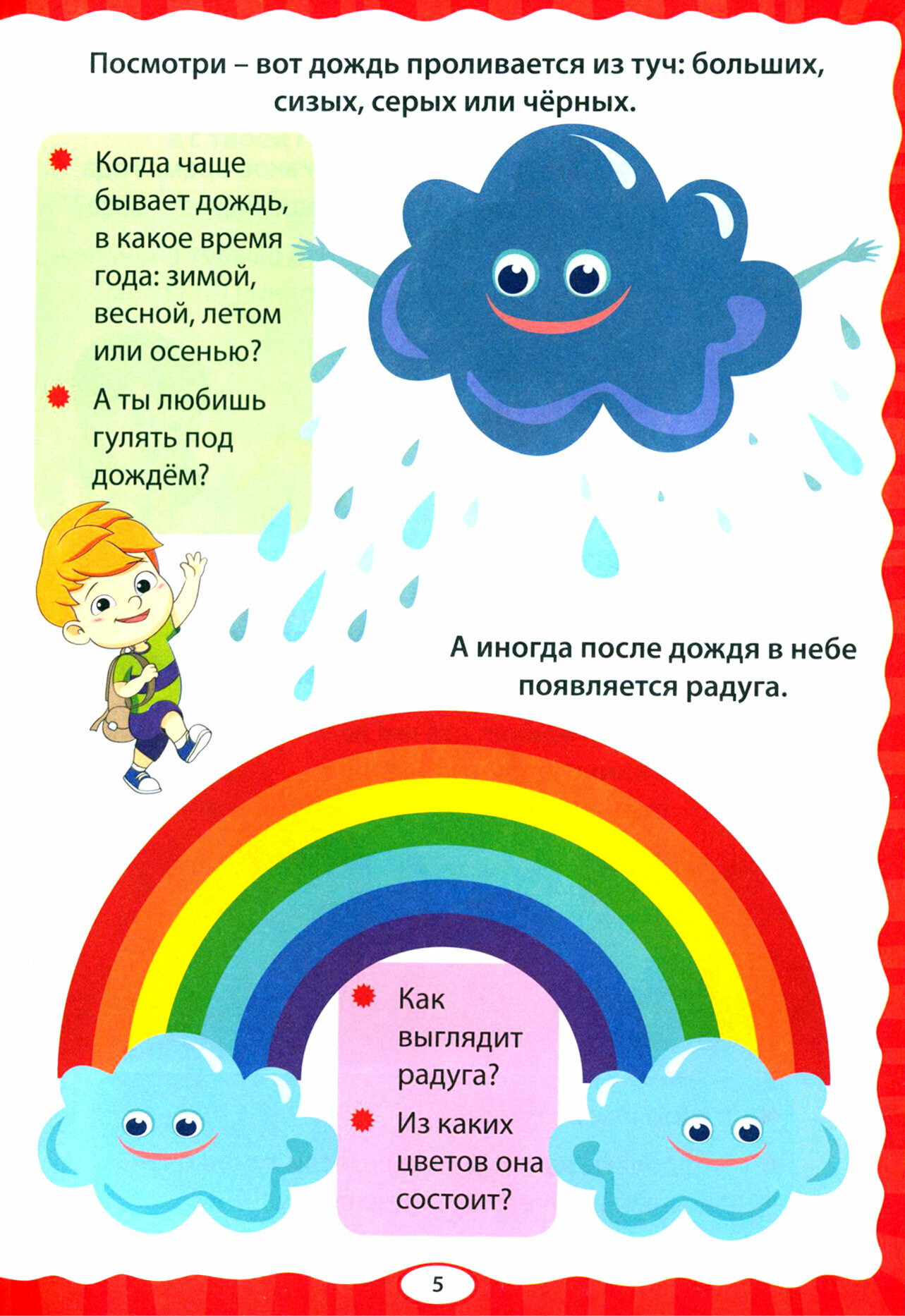 Ваш малыш растёт и его, конечно, интересуют многие вещи, которые его окружают – на улице, в доме и на прогулке. Отвечая на простые вопросы о природе и погоде, растениях и насекомых, животных и птицах, ребёнок в игровой форме лучше познакомится с окружающим миром. А ещё в нашей книжке есть яркие симпатичные картинки. Они помогут вашему малышу запомнить окружающие вещи и одежду, овощи и фрукты, еду и напитки.