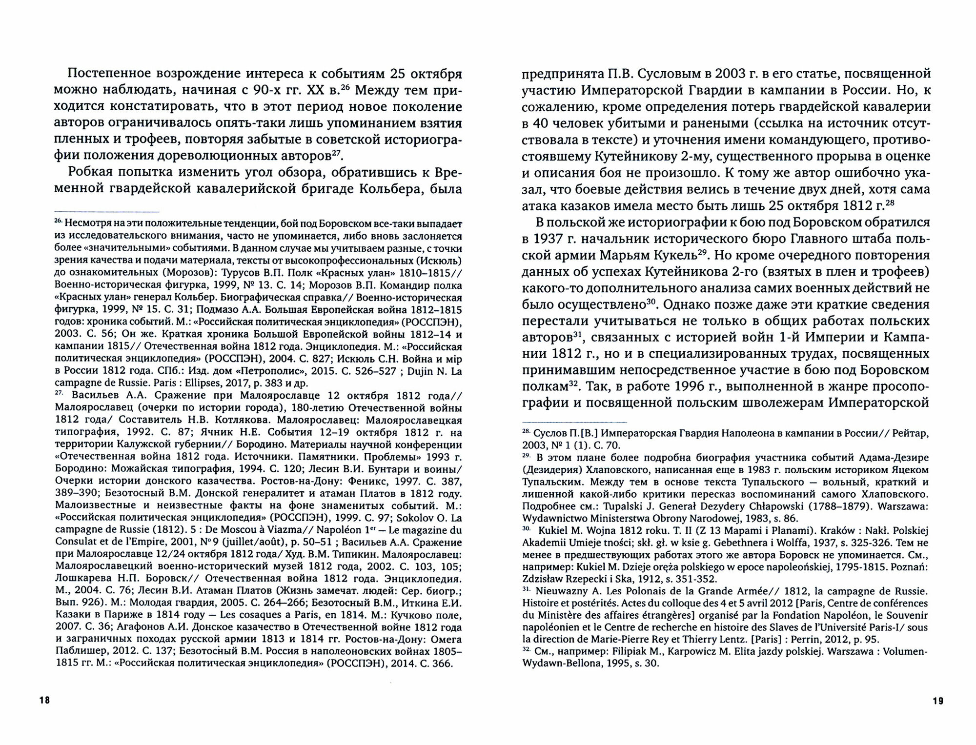Французскую армию периода 1-й Империи невозможно представить без истории Императорской Гвардии. Однако романтический ореол, сложившийся вокруг образа "элиты из элит", не позволяет сегодня всесторонне и взвешенно оценивать ее. В книге предпринята попытка посмотреть на силы Императорской Гвардии в условиях полноценного боя и вызова всей армии: отступления из Москвы в 1812 г. На примере практически неизвестного, малоизученного боя под Боровском 25 октября 1812 г. дается подробнейший анализ устройства гвардии, межполковой коммуникации и ее эффективности на поле боя. В основе монографии — уникальные и в основном неизвестные источники, выявленные в архивах России, Франции, Голландии, Польши, Австрии и в частных коллекциях и семейных собраниях Европы. Данная работа адресована как специалистам, так и тем, кто интересуется эпохой войн 1-й Республики и 1-й Империи (1792-1815 гг.).
