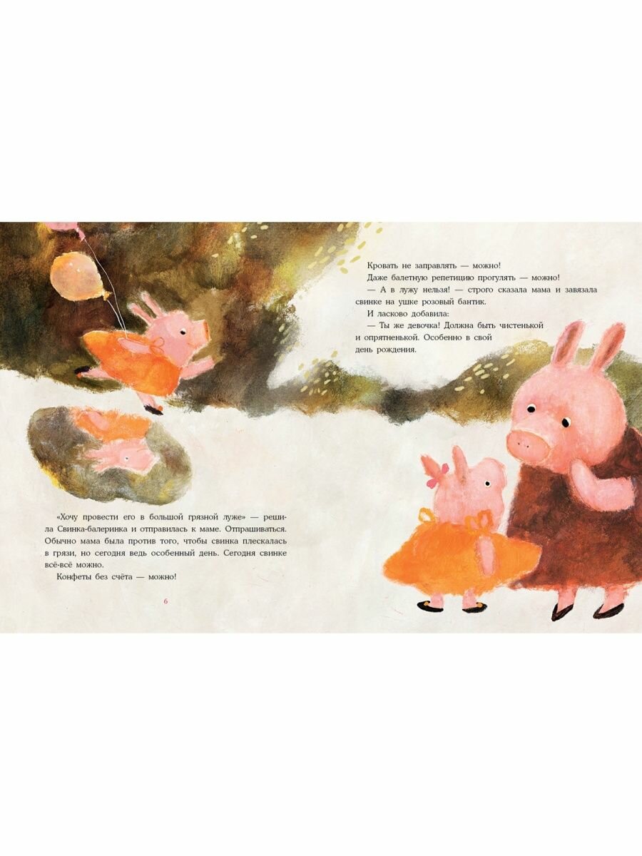 У Свинки-балеринки сегодня день рождения, и её самое большое желание в этот день - плескаться в большой грязной луже! Вот только мама не разрешает свинке пачкать новое красивое платье - ведь она девочка, и должна всегда быть чистой и опрятной. Вскоре в гости приходят друзья с подарками. Свинка очень рада - однако она пока не знает, что самый лучший подарок ждёт её впереди!