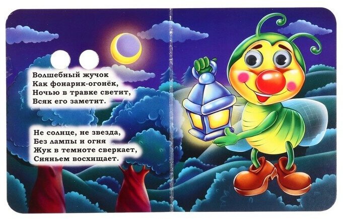 Благодаря глазкам эти небольшие книжки превращаются в игрушки: стоит перелистнуть страничку, и на ребенка теми же глазками уже поглядывает новый герой. Книги подходят для самых маленьких, ведь они сделаны из плотного картона. Красочные иллюстрации и забавные стихотворения расскажут малышу обо всем том, чего он пока не знает.