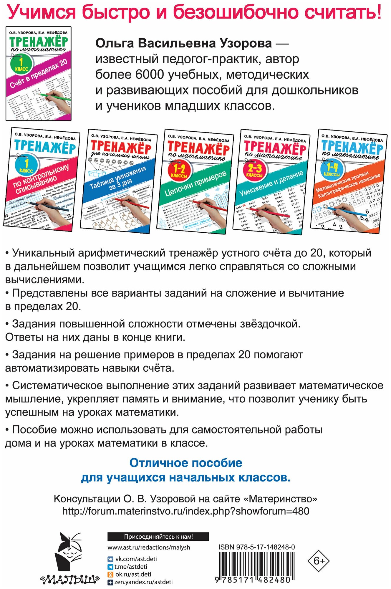 Счет в пределах 20 Тренажер по математике 1 класс (Нефедова Елена Алексеевна, Узорова Ольга Васильевна); Сова. Малыш (Обучающая и развивающая литература), 2022
