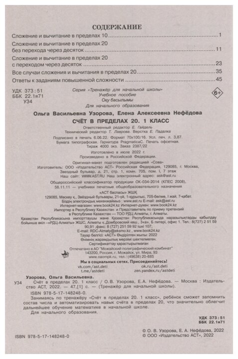 Пособие «Цифры и счёт в пределах 20.Тренажер по математике 1 класс» разработано известными педагогами-практиками О. В. Узоровой и Е. А. Нефёдовой, авторами более 700 учебных пособий для начальной школы.