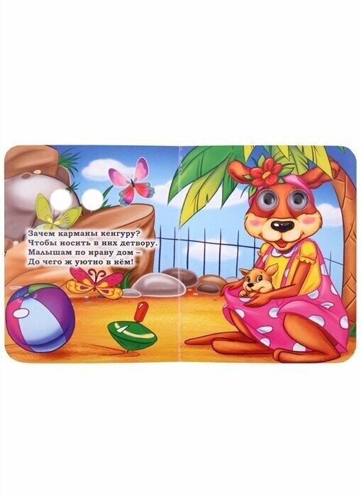Благодаря глазкам эти небольшие книжки превращаются в игрушки: стоит перелистнуть страничку, и на ребенка теми же глазками уже поглядывает новый герой. Книги подходят для самых маленьких, ведь они сделаны из плотного картона. Красочные иллюстрации и забавные стихотворения расскажут малышу обо всем том, чего он пока не знает.