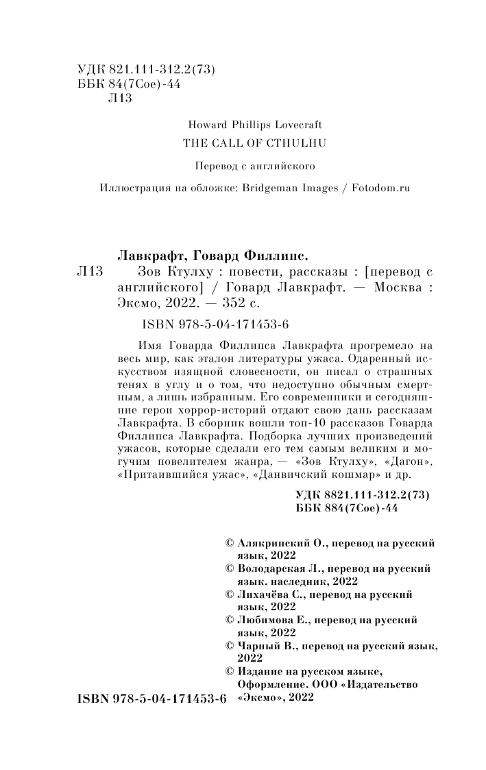 Книга: Зов Ктулху (Лавкрафт Говард Филлипс); ООО "Издательство "Эксмо", 2022