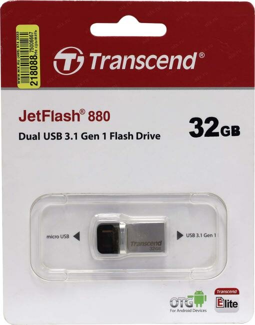 - Распаковка Transcend JetFlash 880 32GB USB 3.0/micro USB Silver-Black из Rozetka.com.ua