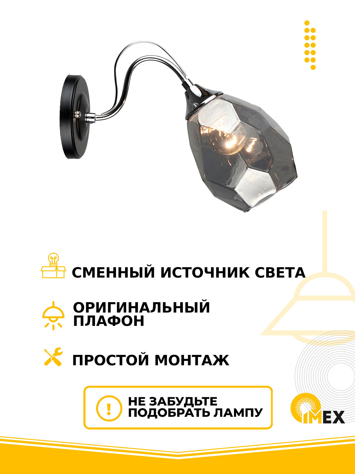 Бра - продукт известной компании Imex (Германия). Имеет максимальную мощность 60 Вт, освещает площадь до 3 кв. м. Отлично подойдет для таких мест, как гостиная, прихожая и коридор, спальня, кабинет. Впишется в интерьеры следующих стилей: модерн.