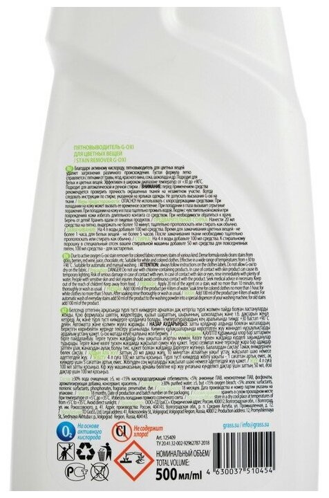 Пятновыводитель G-Oxi для цветных вещей с активным кислородом (флакон 500 мл) Grass G-OXI gel color