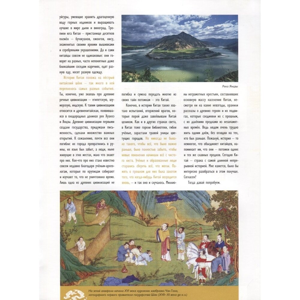 Перед вами действительно уникальная книга - вся история Древнего Китая под одной обложкой: как она началась 40 тысяч лет назад появлением в Китае человека разумного и как завершилась в III веке нашей эры падением империи Хань. Её написал специалист по истории Китая - Сергей Викторович Дмитриев. "История Китая похожа на пёстрый китайский шёлк - так много в ней переплелось самых разных событий", - так начинает свою книгу автор. И в этом вы можете убедиться с первых же глав: на ваших глазах оживут боги древних мифов, заговорят иероглифы, начнут смертельную схватку древние царства, императоры отправят в путь экспедиции в поисках бессмертия. В этой книге каждый читатель найдёт главу по душе. Кому-то будет интересно, как возникали и распадались империи, как боролись за власть претенденты на престол и что ждало победителей. Другого увлечёт рассказ о повседневной жизни древности: о том, что ели и во что одевались люди, где учились и во что играли, как отмечали праздники и провожали в последний путь умерших. Как и положено детской энциклопедии. текст сопровождают иллюстрации: одни - репродукции произведений древнего искусства, другие - реконструкции быта и повседневной жизни Китая, наконец, третьи - комиксы, придуманные художником Надеждой Давыдовой. Благодаря этим комиксам даже самые сложные повороты китайской истории покажутся читателем увлекательным приключениям и запомнятся без труда.