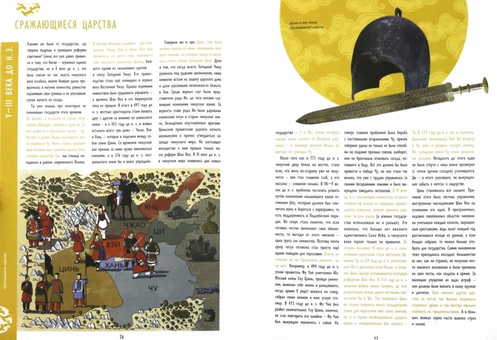 Книга очень хорошо иллюстрирована, что приятно, но замечательна она, безусловно,текстом Автора, который выдает глубокие знания древнекитайской истории в занимательной и доступной школьнику форме. В результате получаешь огромное удовольствие от "проникновения" в совершенно незнакомую жизнь древних китайцев и непринужденно обогащаешься ценными познаниями их истории.